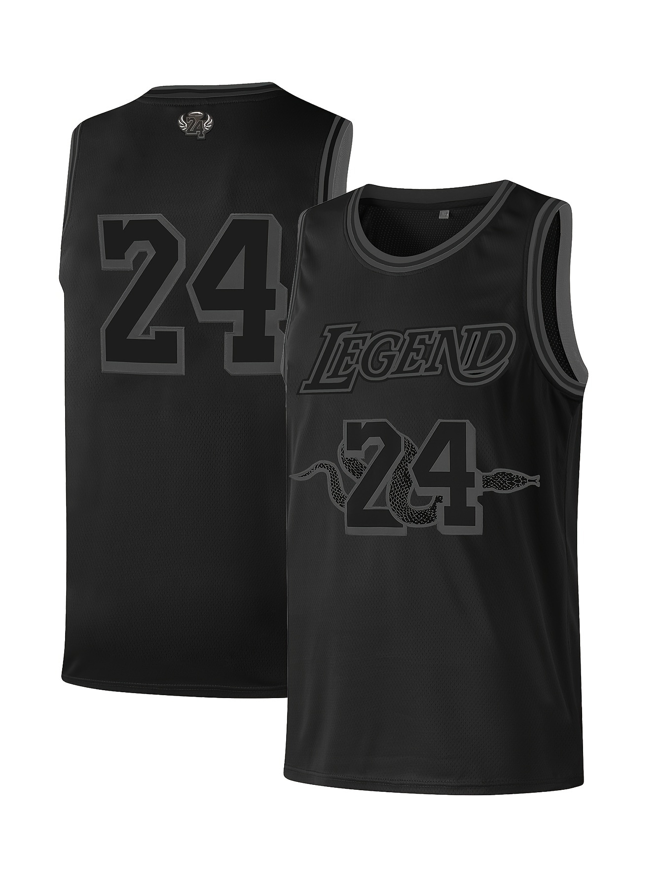 Men's All Black Basketball Suit # 24 Classic Retro Embroidered Sleeveless Sweatwicking And Breathable Tank Top Basketball Suit