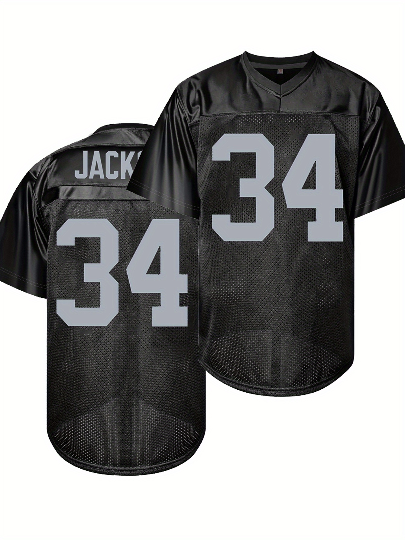 Men's Black #34 Breathable American Football Jersey - Embroidered V-Neck Loose Fit Rugby Shirt for Training, Matches & Casual Wear | All-Season Machine Washable Sportswear, Embroidered Detailing