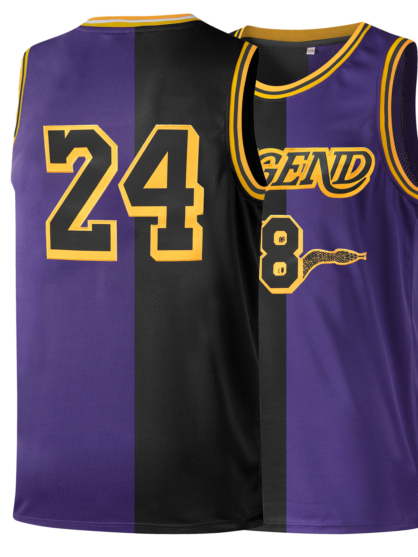 Men's Black & Purple Basketball Jersey #8-24 - Retro Embroidered "LEGEND" Sleeveless Tank Top, Sweat-Wicking Breathable Fabric, Loose Fit for Sports, Casual & Outdoor Activities, All-Season Wear, Basketball Shirt, Embroidered Detailing
