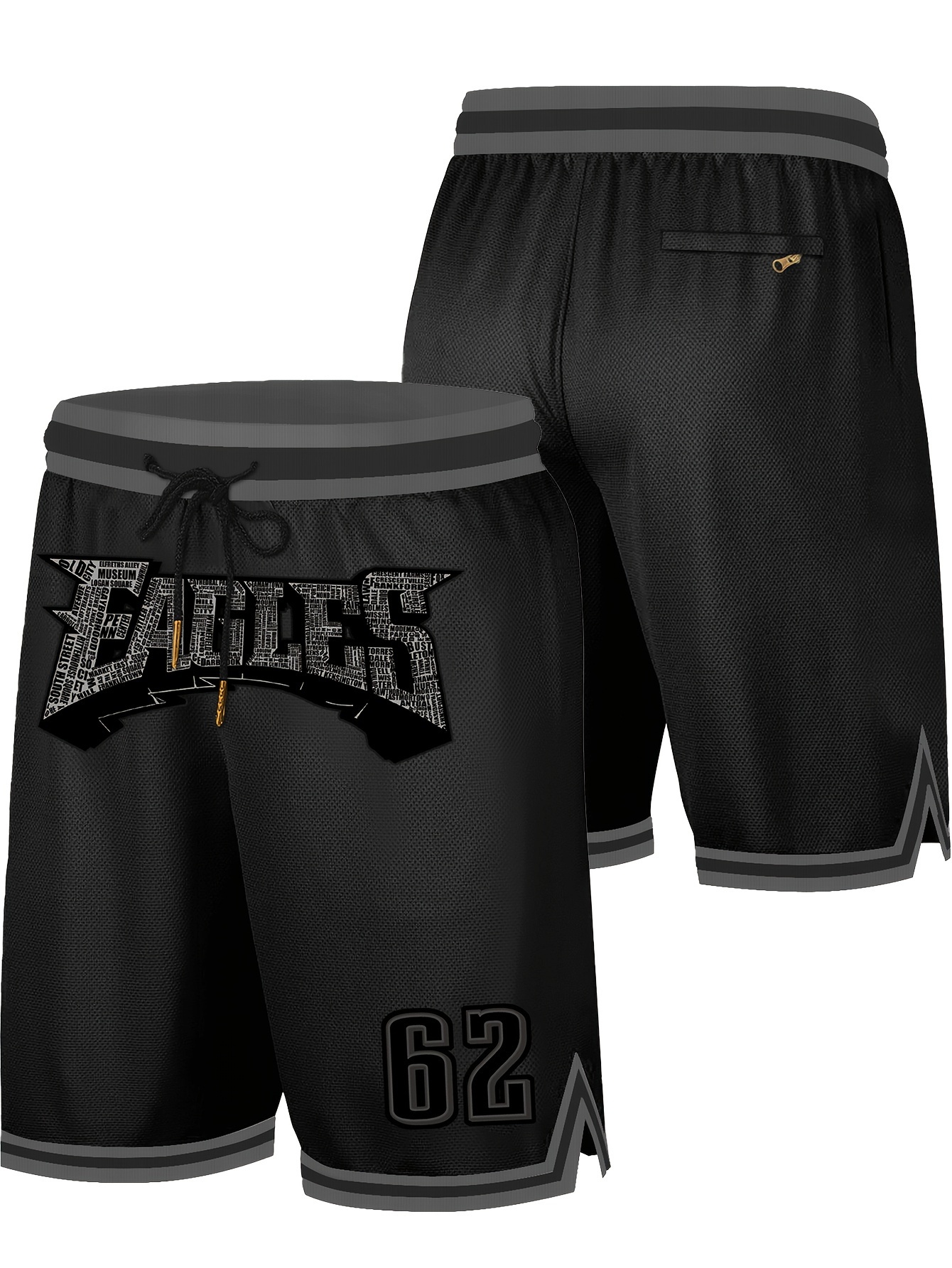 Men's Black Gray # 62 Rugby Shorts, Classic Letter Embroidery Design, Button Style Short Sleeved Breathable Shirt, Suitable For Training And Competition