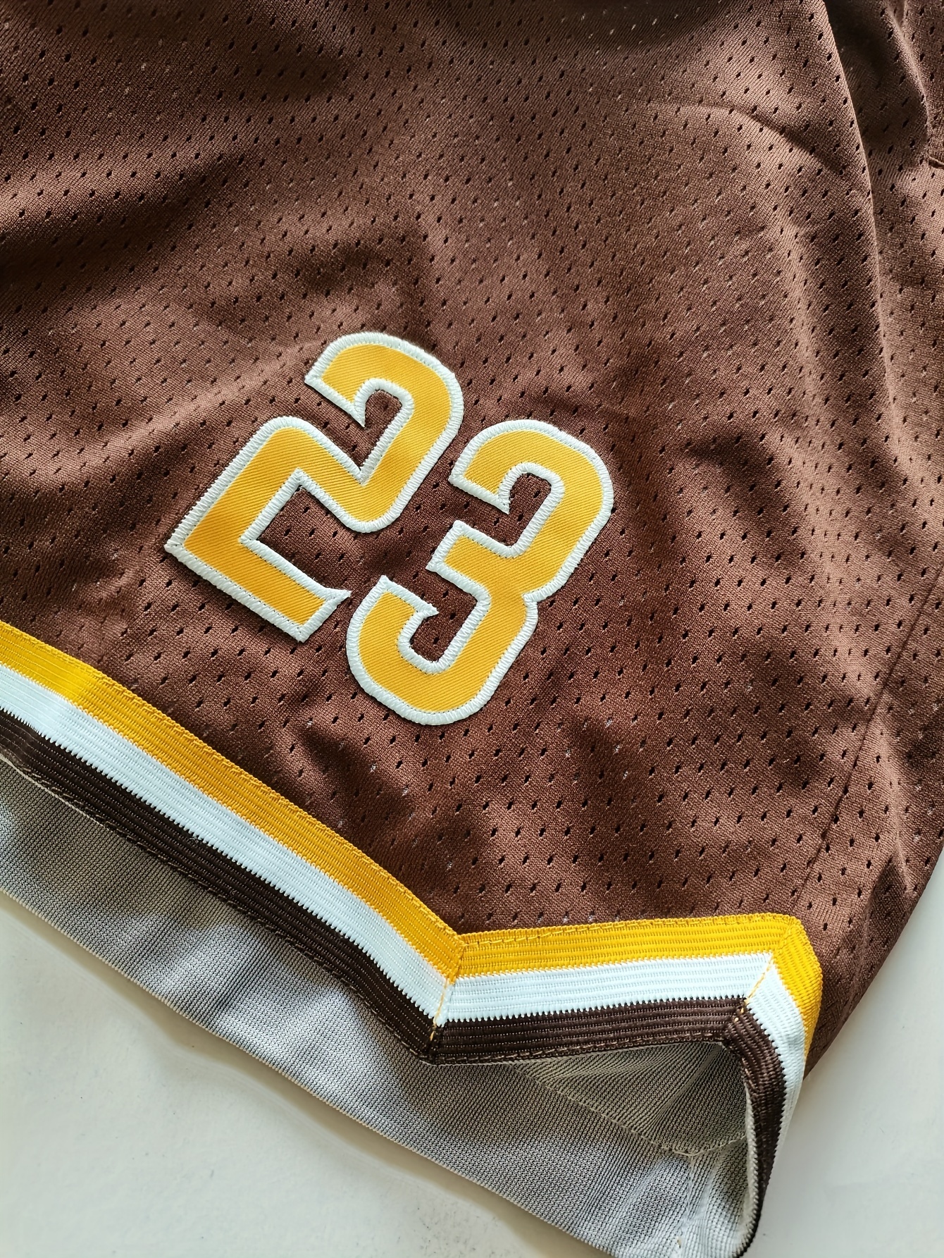 Men'S Brown # 23 Baseball Shorts, Classic Letter Embroidery Design, Breathable Button Style Short Sleeve Shirt, Suitable For Training And Competition