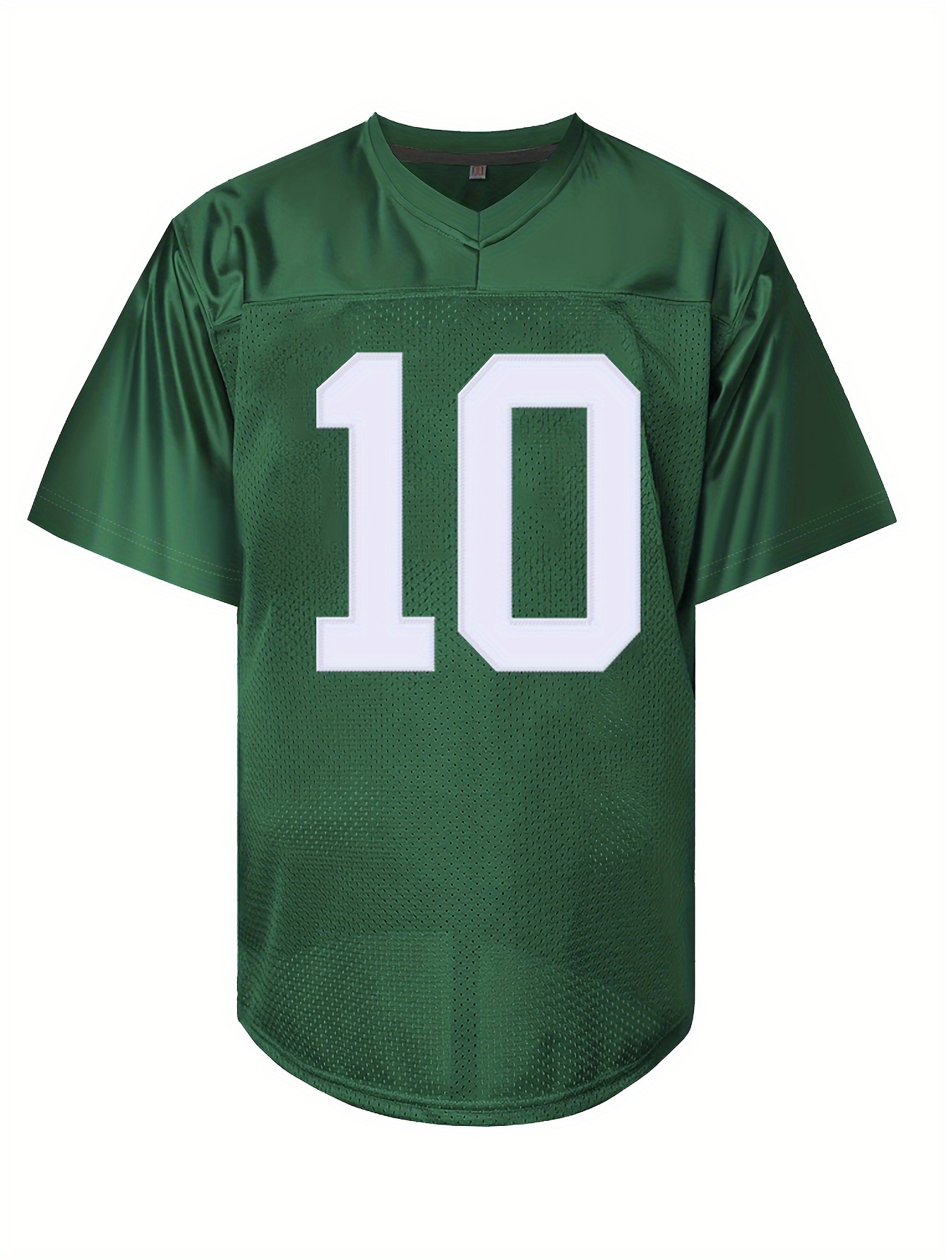 Men's Green# 10 Breathable Rugby Shirt, Sports V-neck Short Sleeve Training Match Uniform, Embroidered American Football Shirt