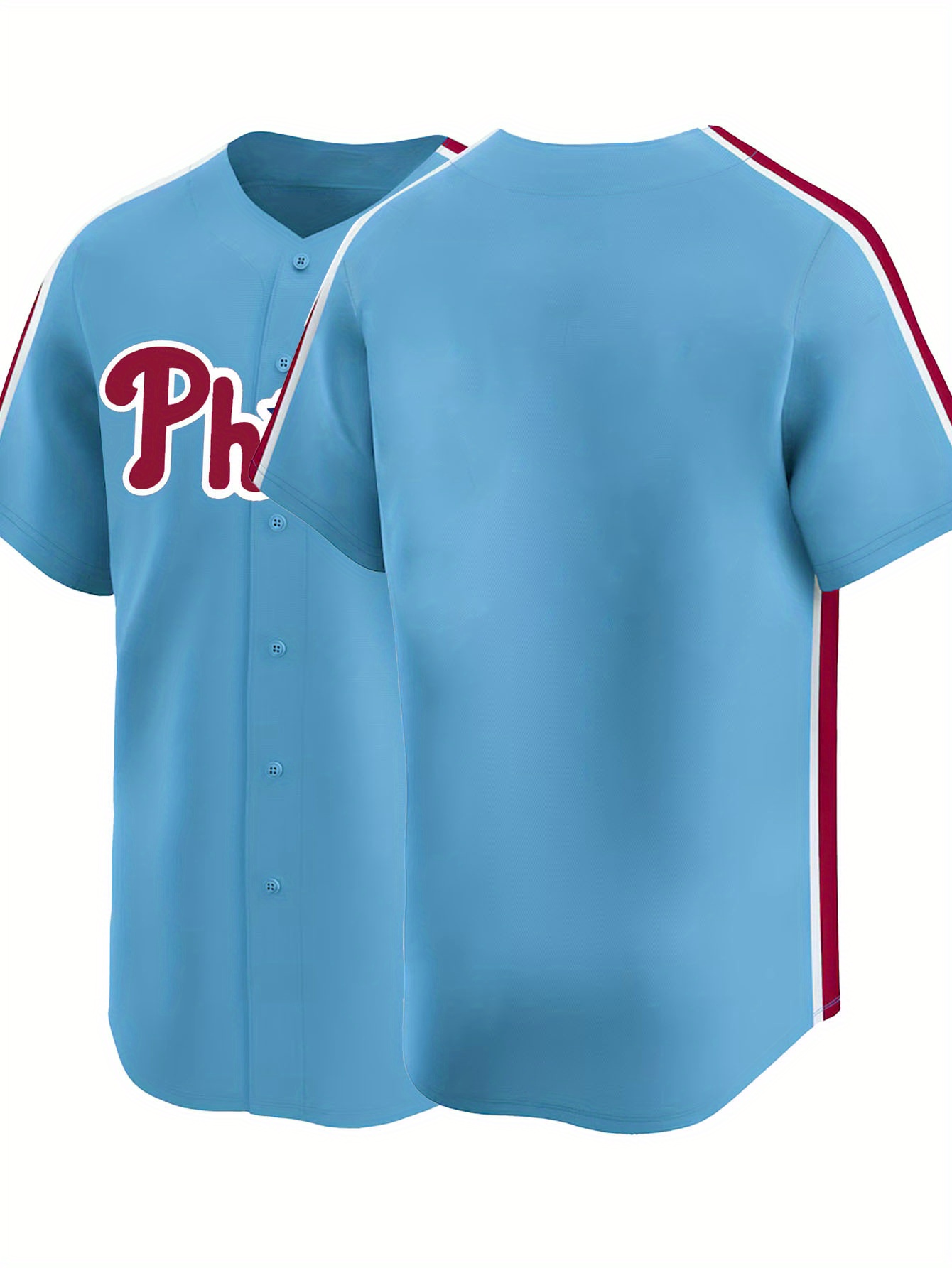 Men'S Moon Blue Baseball Shirt, Classic Letter Embroidery Design, Button Style Short Sleeved Breathable Shirt, Used for Training And Competitions