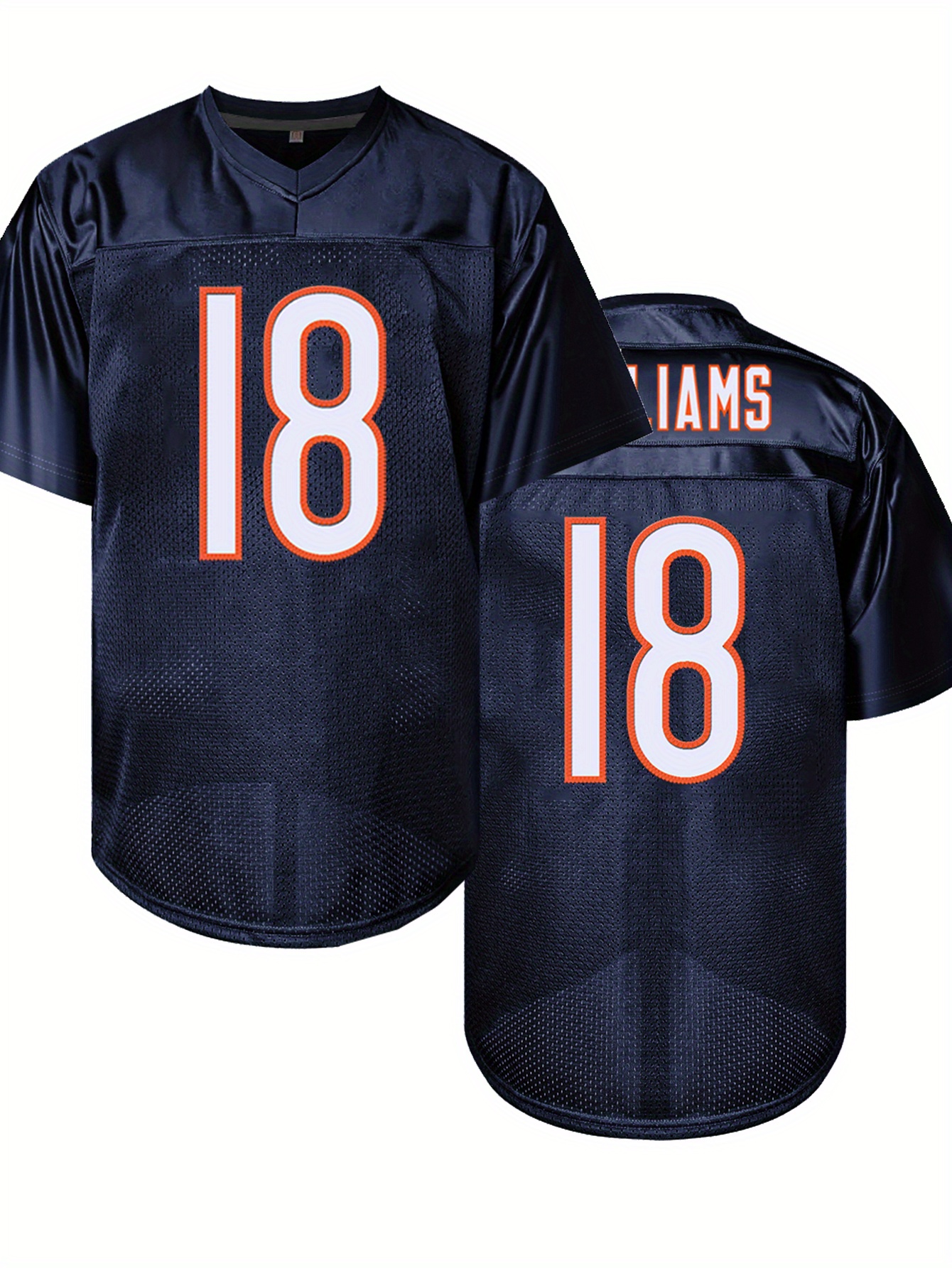 Men's Navy Blue #18 Breathable American Football Jersey - V-Neck Short Sleeve Embroidered Rugby Shirt, Loose Fit All-Season Training & Casual Wear, Machine Washable Sportswear