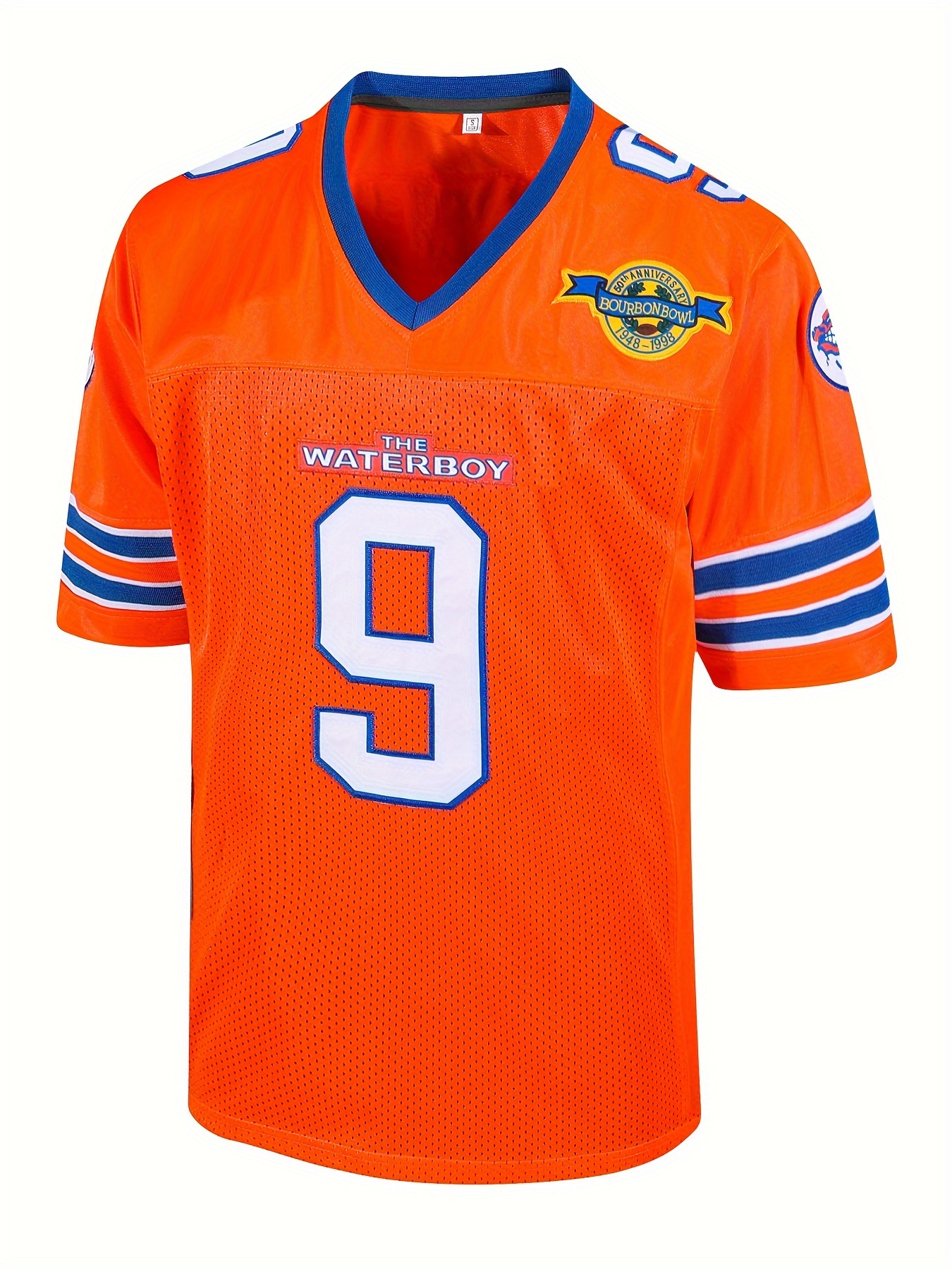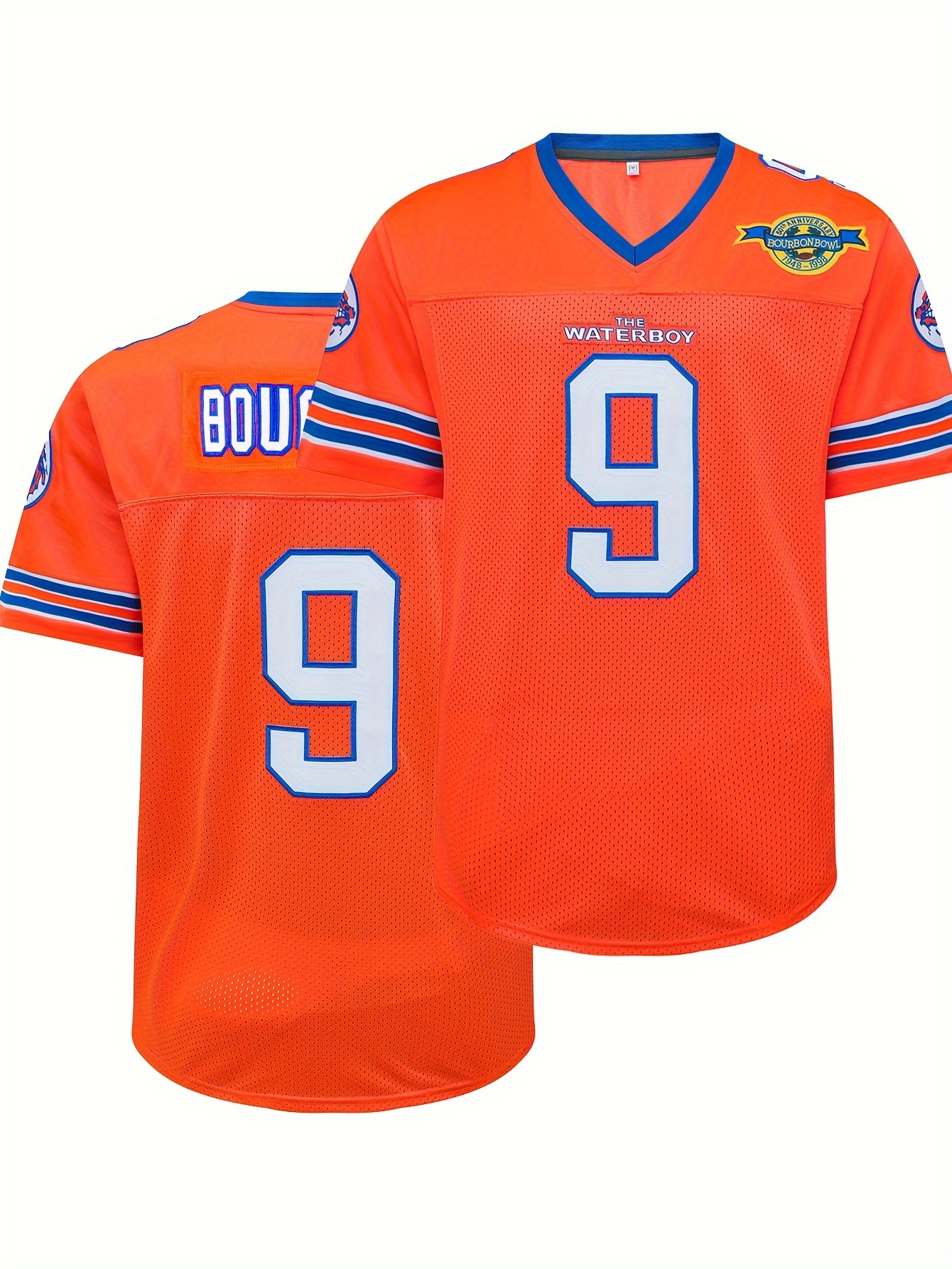 Men's Orange # 9 Breathable Rugby Shirt, Sports V-neck Short Sleeve Training Match Uniform, Embroidered American Football Shirt