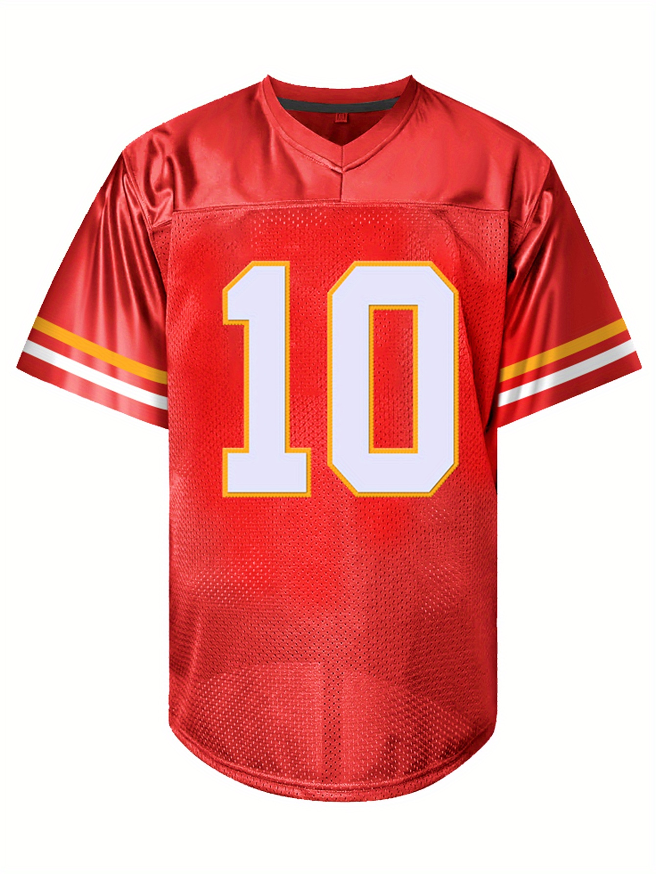 Men's Red #10 Embroidered American Football Jersey - Loose Fit Breathable V-Neck Rugby Top for Sports, Casual & Streetwear | All-Season Machine Washable Shirt for Adults & Teens, Customizable Football Jersey, Durable Sportswear