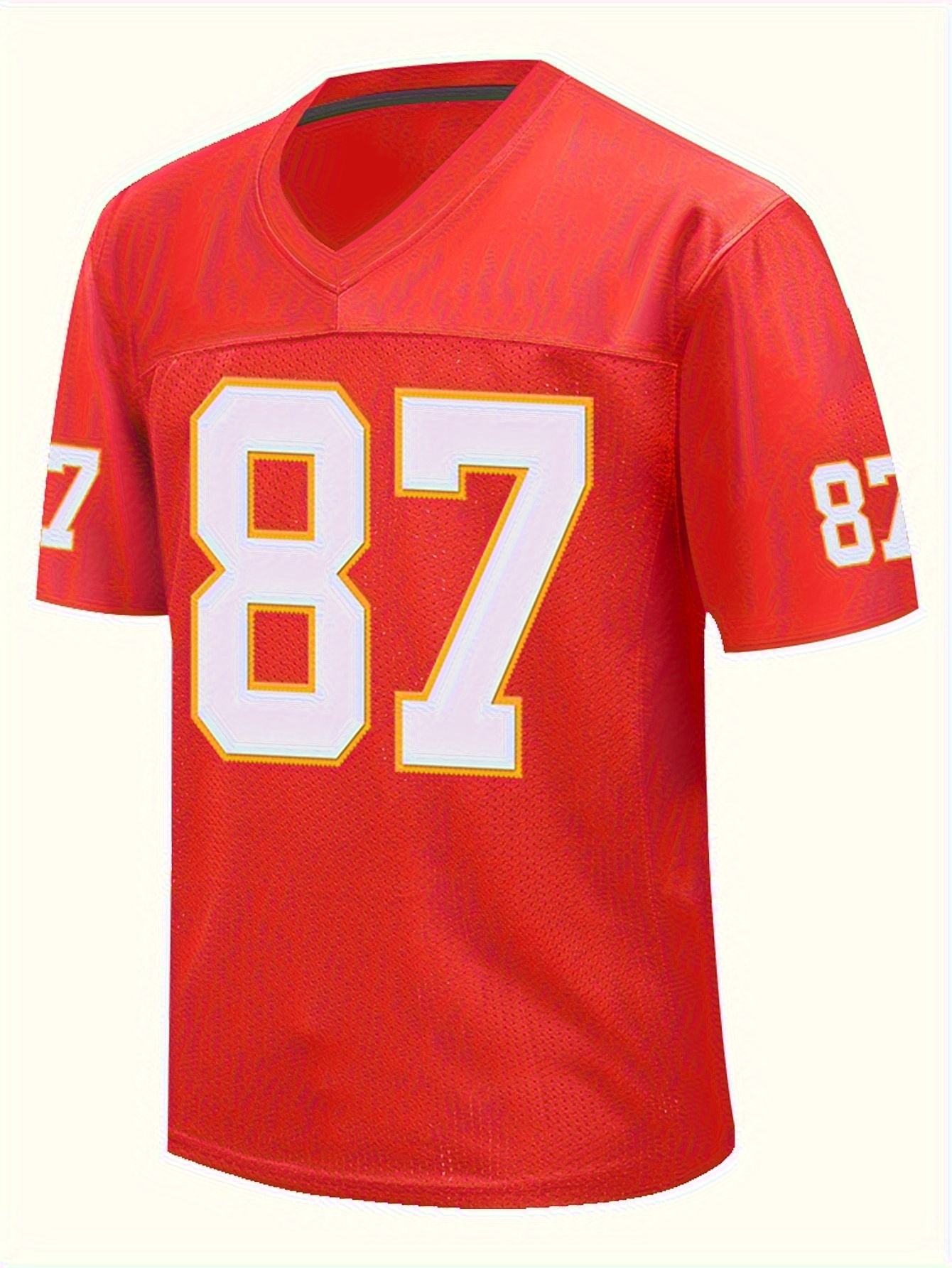 Men'S Red # 87 Breathable Rugby Shirt, Sports V-neck Short Sleeve Training Match Uniform, Embroidered American Football Shirt