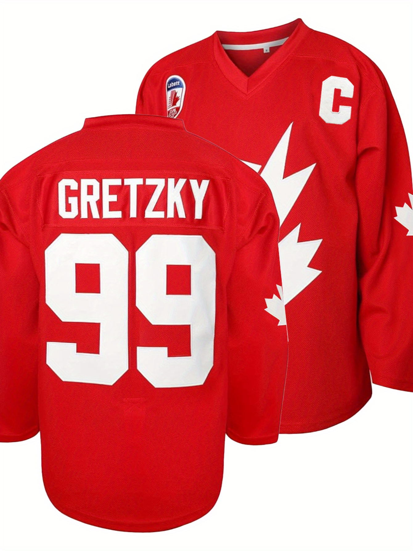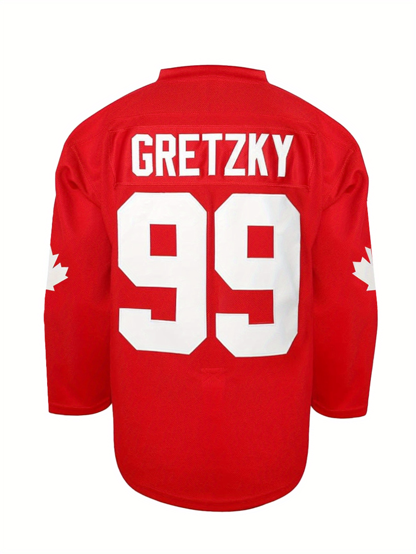 Men's Red #99 Maple Ice Hockey Sweatshirt - Breathable Loose Fit V-Neck with Gretzky Embroidered Design & Canadian Maple Leaf, Sporty Casual Streetwear for All Seasons, Machine Washable, Seasonal Attire, Embroidered Detailing