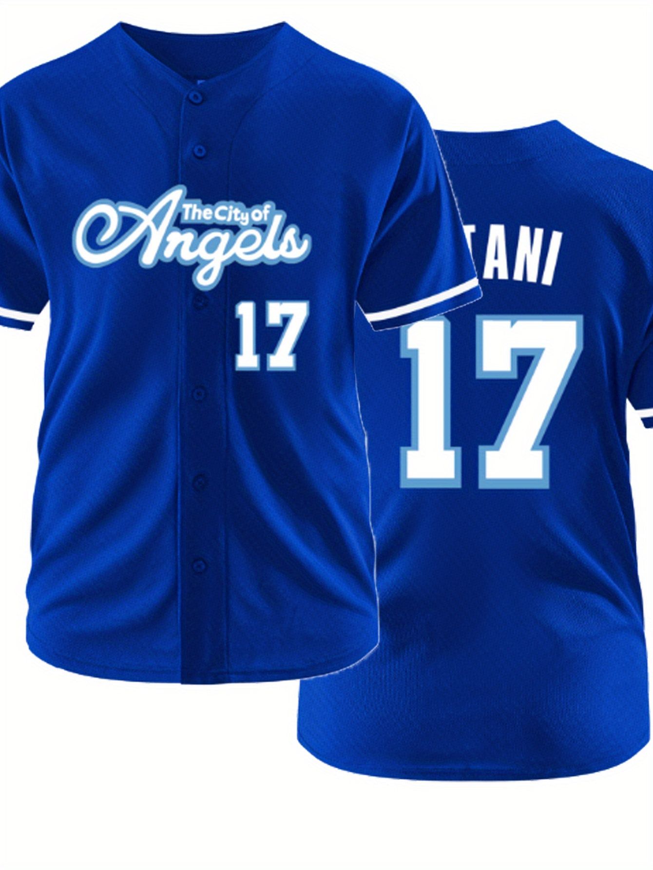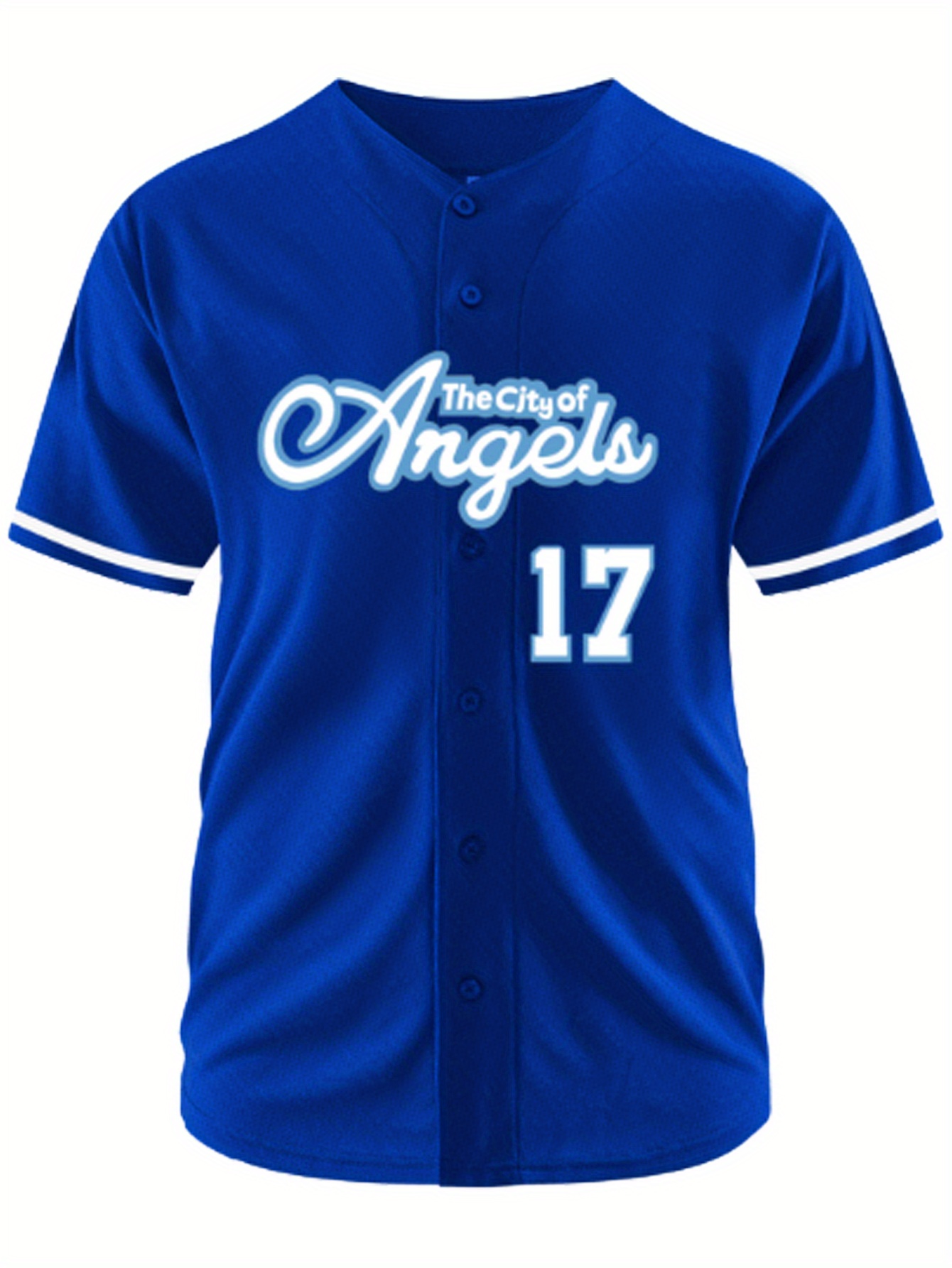 Men's Royal Blue #17 Baseball Jersey - Embroidered "The City of Angels" & Kuzniak Back, Breathable Loose Fit V-Neck Button-Up Shirt for Streetwear, Sports & Casual Wear (Machine Washable)