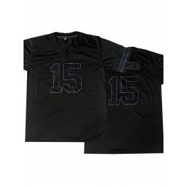 Men'S Black # 15 Breathable Rugby Shirt, Sports V-neck Short Sleeve Training Match Uniform, Embroidered American Football Shirt