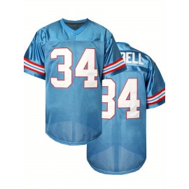 Men's Moon Blue #34 Embroidered American Football Jersey - Loose Fit Breathable V-Neck Rugby Top for Casual Streetwear, Sports & Outdoor Activities | All-Season Comfort, Machine Washable, Athletic Leisure Wear