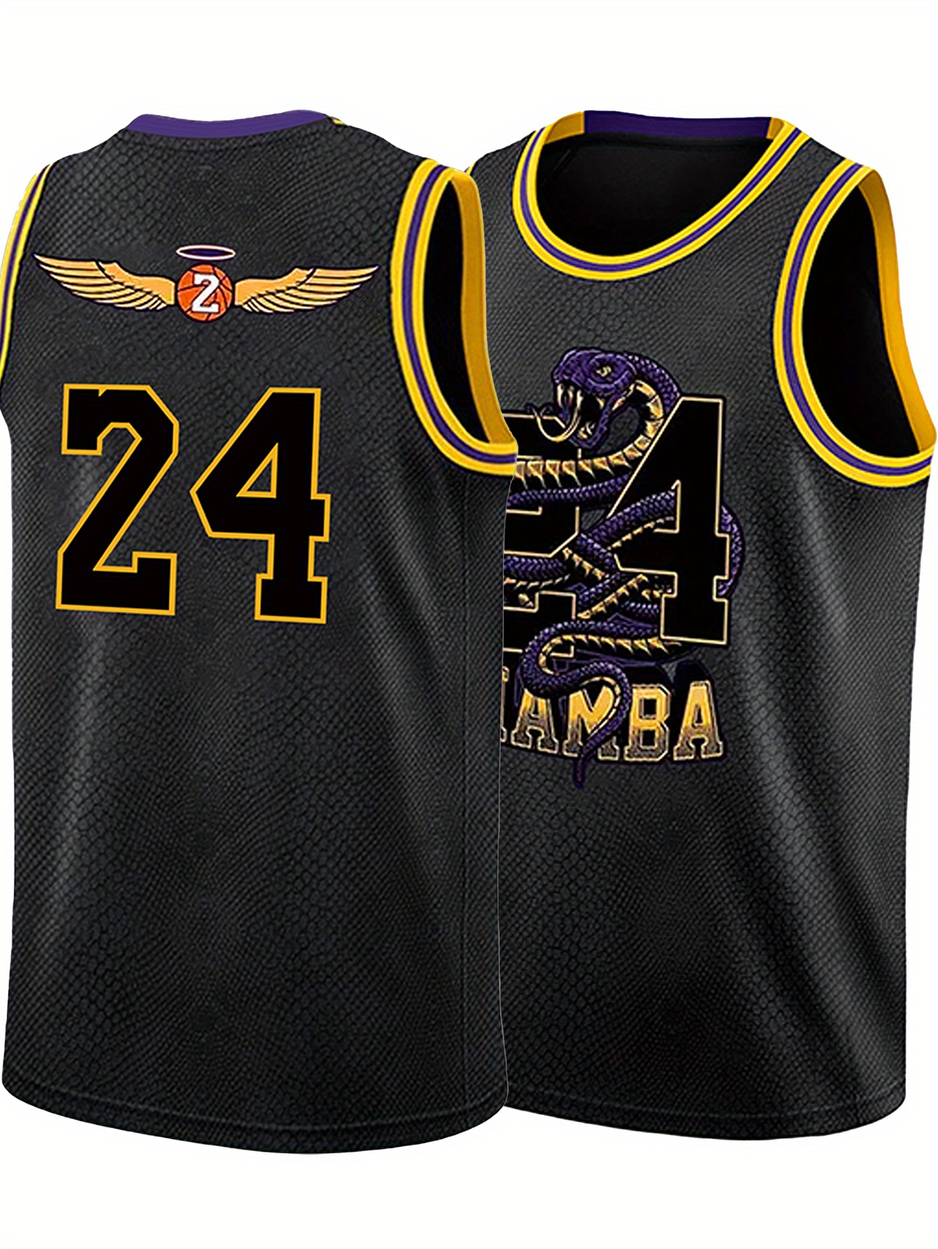 Men'S Black Snake Skin Basketball Suit # 24 Classic Retro Embroidered Letter Sleeveless Sweat wicking Breathable Tank Top Basketball Suit