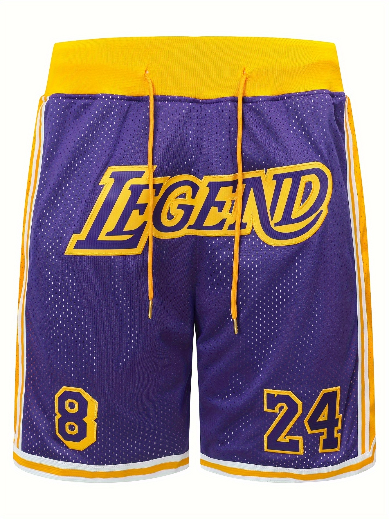 Men's Purple # 8-24 Basketball Shorts, Classic Letter Embroidery Design, Breathable Button Short Sleeve Shirt, Suitable for Training and Competition