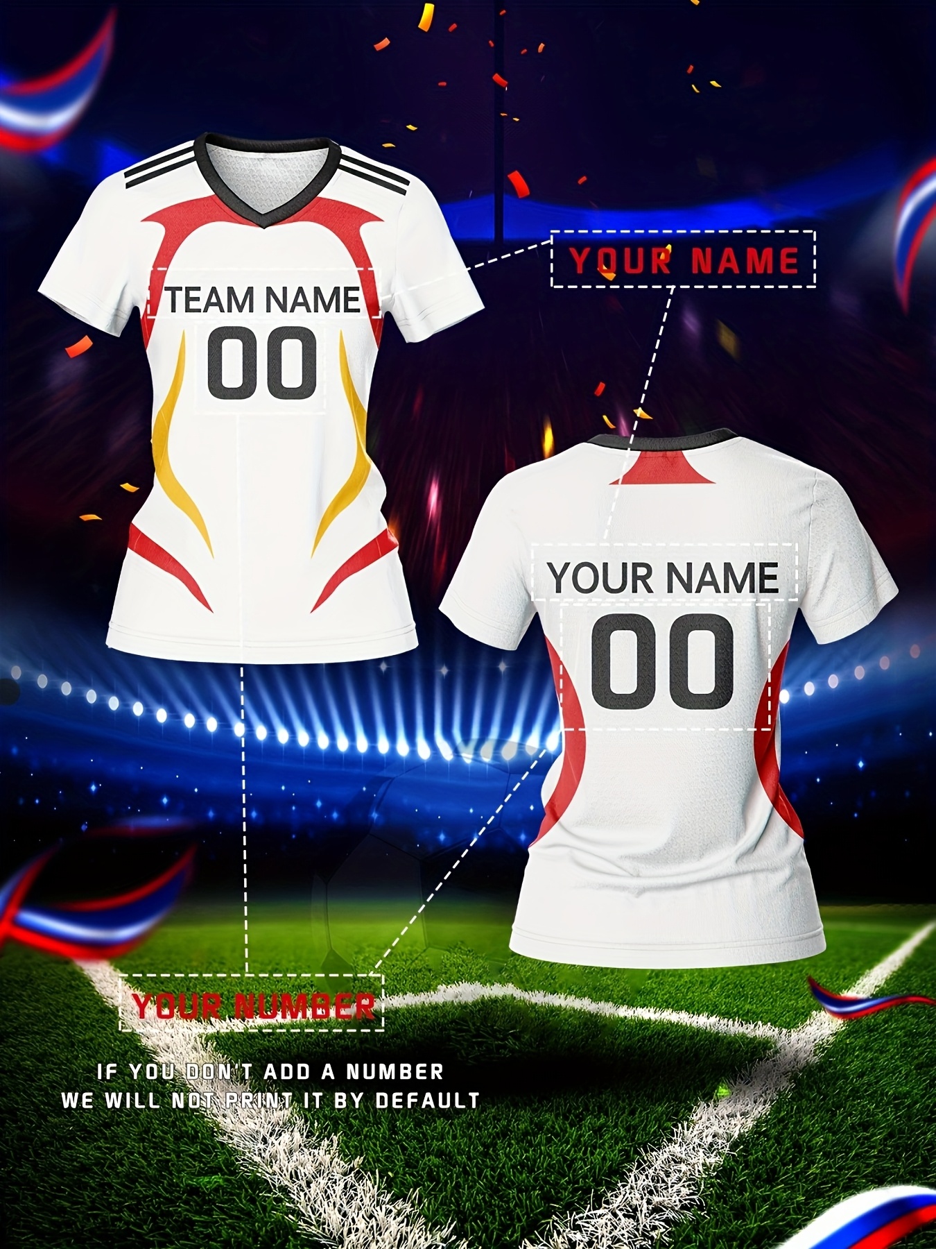 Women's V-Neck Soccer Jersey | Customizable Name & Number | Breathable Polyester | Quick-Dry, Moisture-Wicking | Multi-Color Design for Training and Casual Wear | Spring/Summer/Autumn Sports Apparel