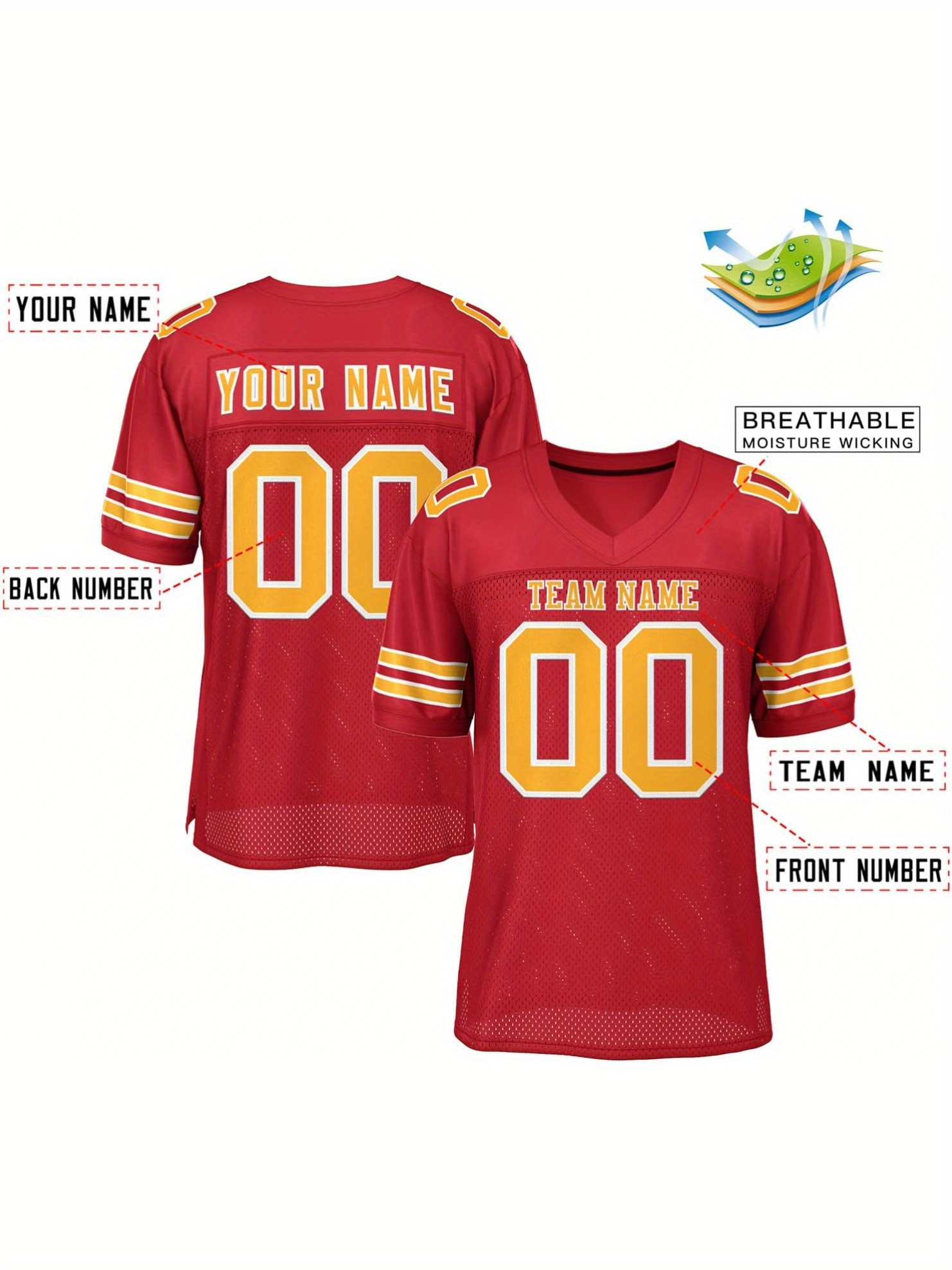 Customized Fitted Plus Size Football Jersey, Personalized Team Name Number, Large Size Women'S Sports Jersey, V-Neck, Non-Stretch Fabric, Print, Summer, with Team Logo, for Sports Activities
