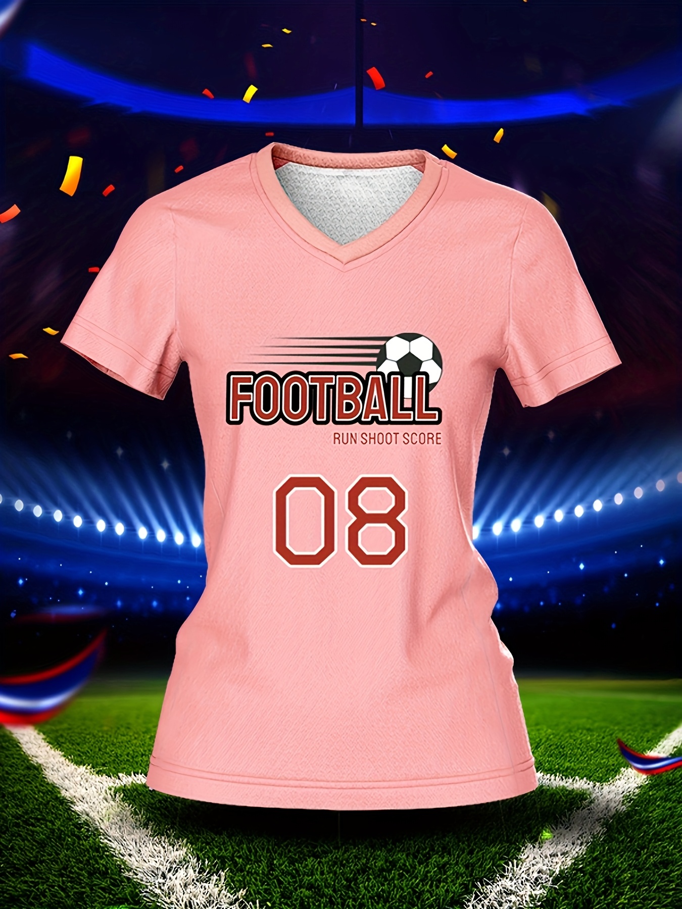Customized Women's V-Neck Football Shirt - Personal Name & Number, Pink, Breathable Polyester, Quick-Dry Sports Top for Team Training & Casual Wear