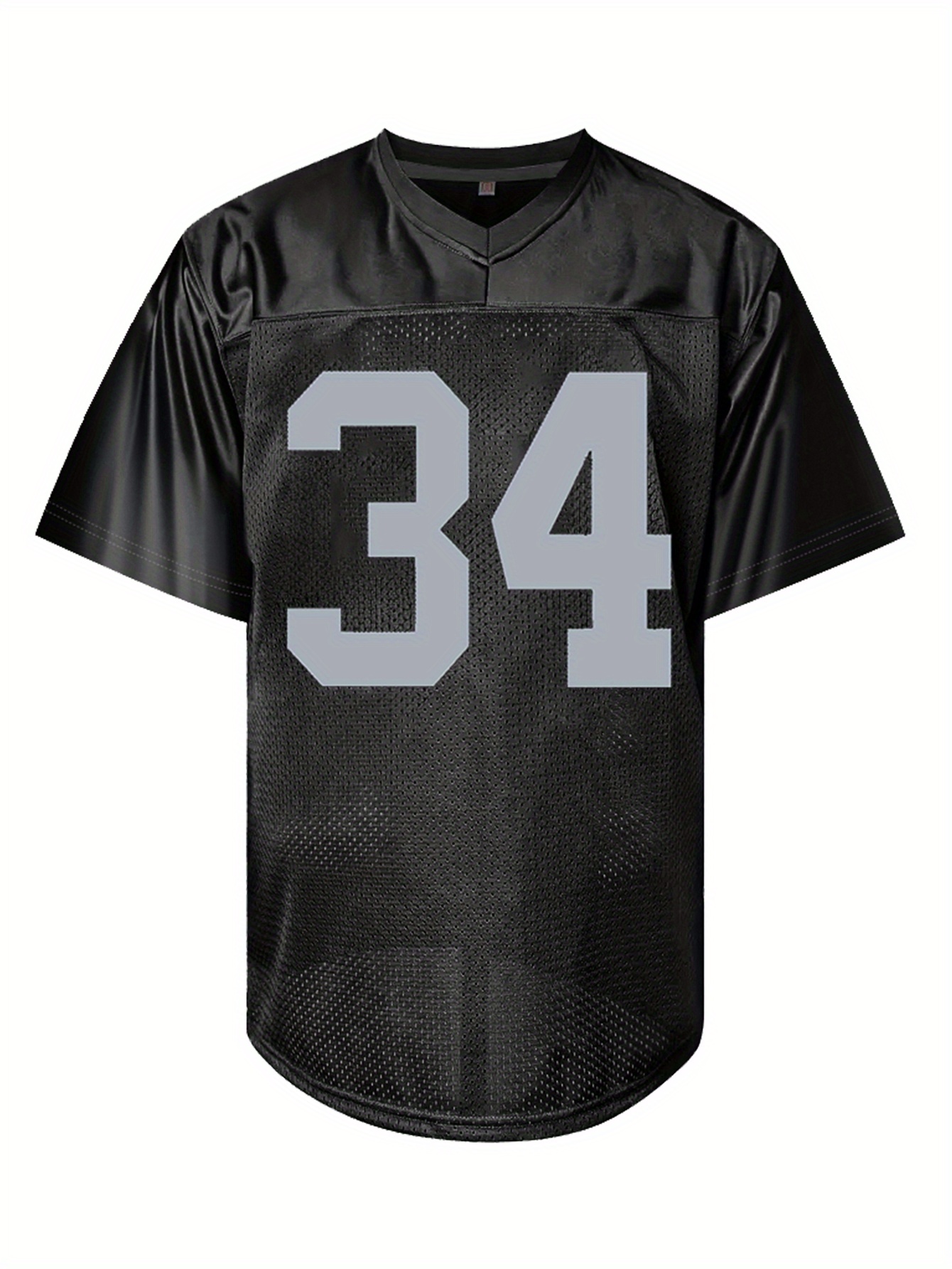 Men's Black #34 Breathable American Football Jersey - Embroidered V-Neck Loose Fit Rugby Shirt for Training, Matches & Casual Wear | All-Season Machine Washable Sportswear, Embroidered Detailing