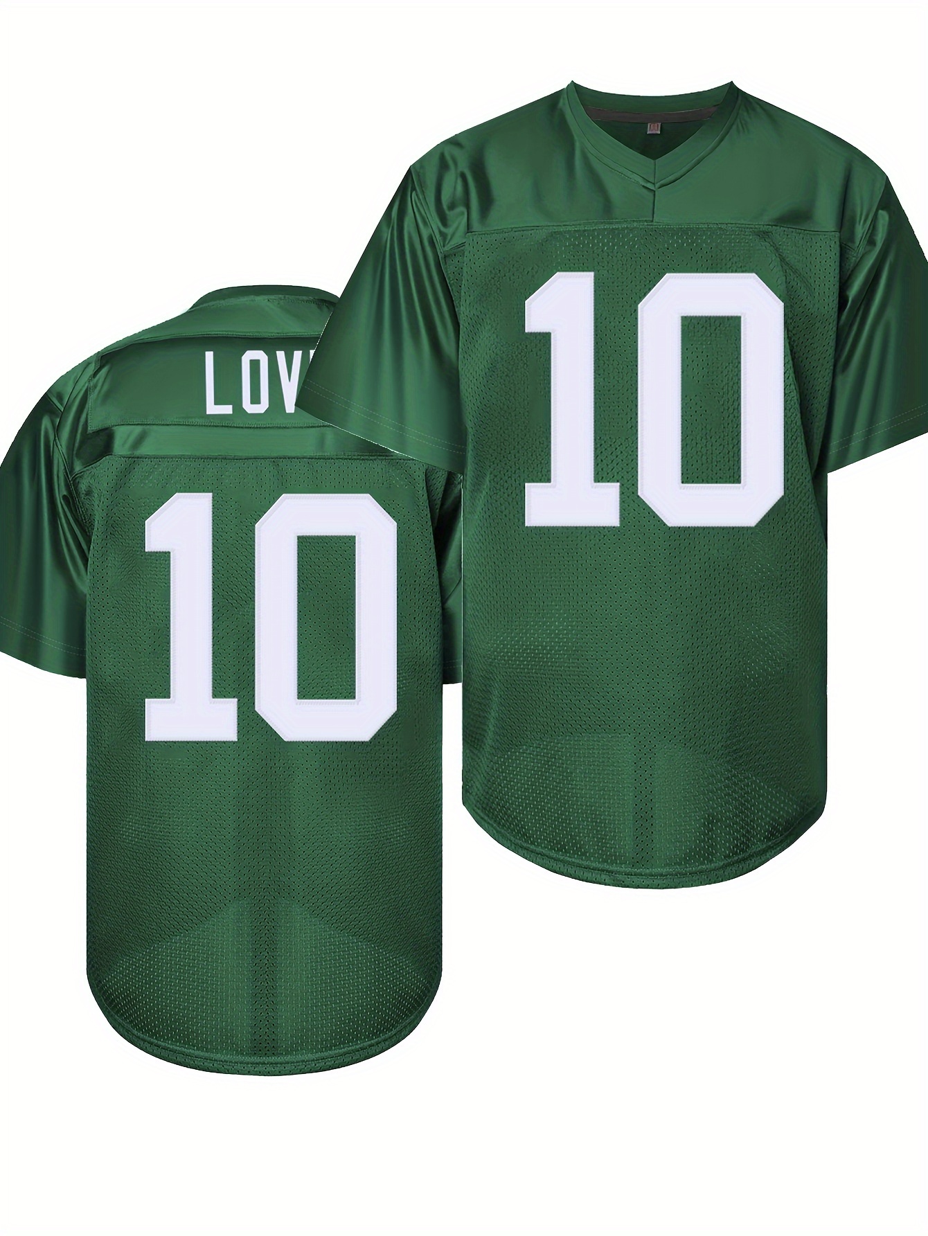 Men's Green# 10 Breathable Rugby Shirt, Sports V-neck Short Sleeve Training Match Uniform, Embroidered American Football Shirt
