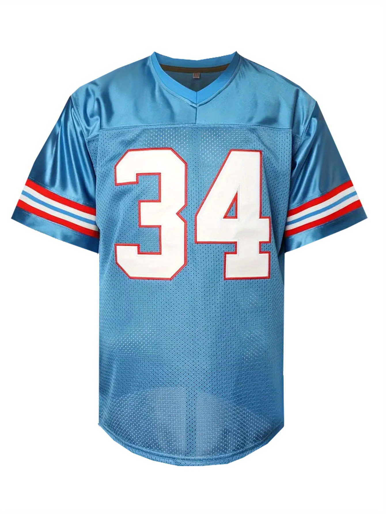 Men's Moon Blue #34 Embroidered American Football Jersey - Loose Fit Breathable V-Neck Rugby Top for Casual Streetwear, Sports & Outdoor Activities | All-Season Comfort, Machine Washable, Athletic Leisure Wear