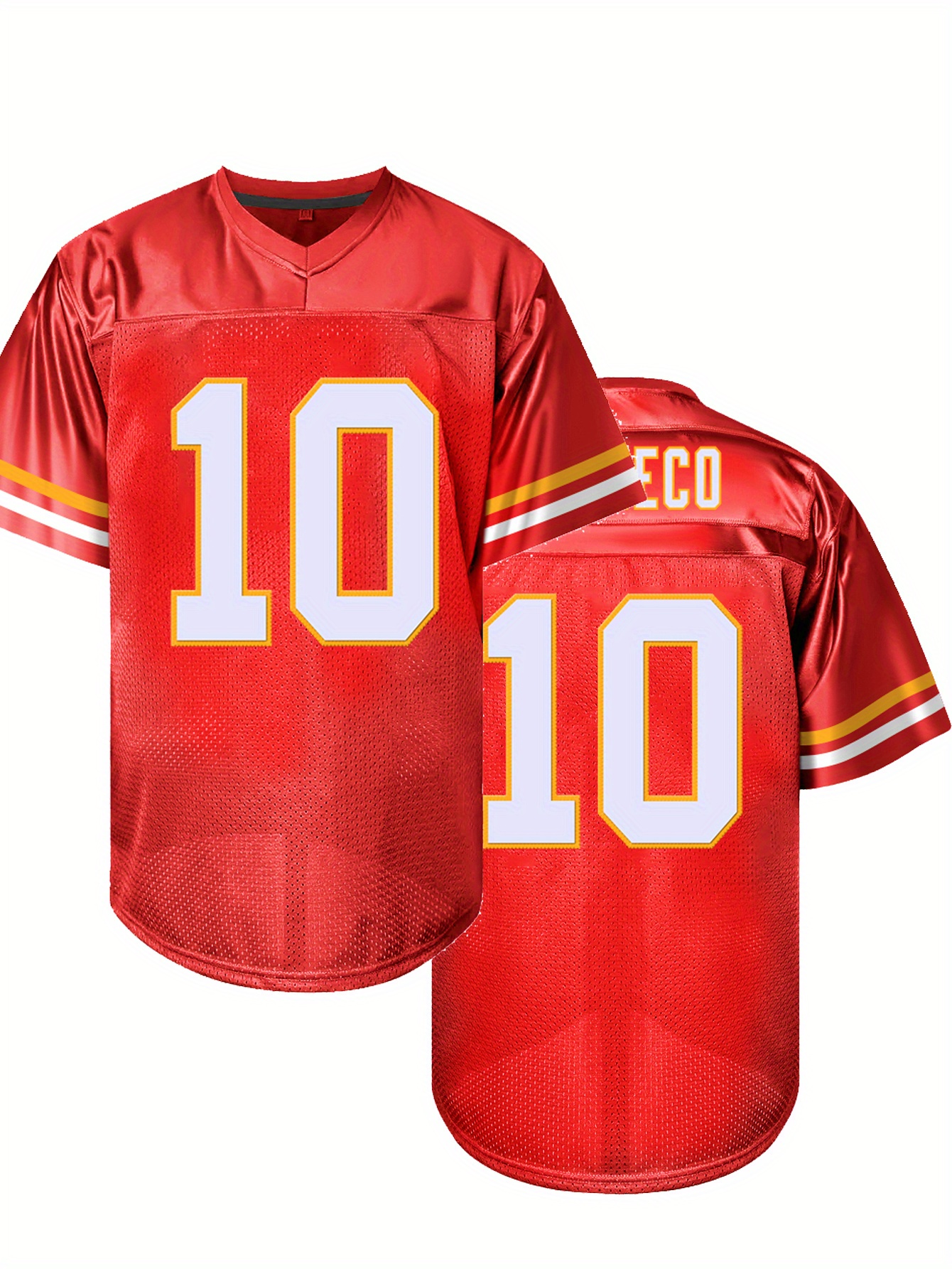 Men's Red #10 Embroidered American Football Jersey - Loose Fit Breathable V-Neck Rugby Top for Sports, Casual & Streetwear | All-Season Machine Washable Shirt for Adults & Teens, Customizable Football Jersey, Durable Sportswear