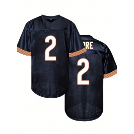 SheLucki Men'S Deep Blue #2 American Football Jersey, Loose Fit, Breathable Polyester, V-Neck, Embroidered Sports Top, Casual Streetwear for All Seasons