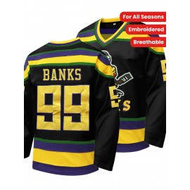 [Embroidered Captain's Jersey] Black Embroidered V-Neck Captain's Jersey - Men's #99 Duck Style Ice Hockey Sweatshirt, Breathable Polyester with Striped Accents, Casual & Sporty for All Seasons
