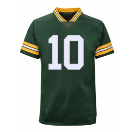 Men's Green# 10 Breathable Rugby Shirt, Sports V-neck Short Sleeve Training Match Uniform, Embroidered American Football Shirt
