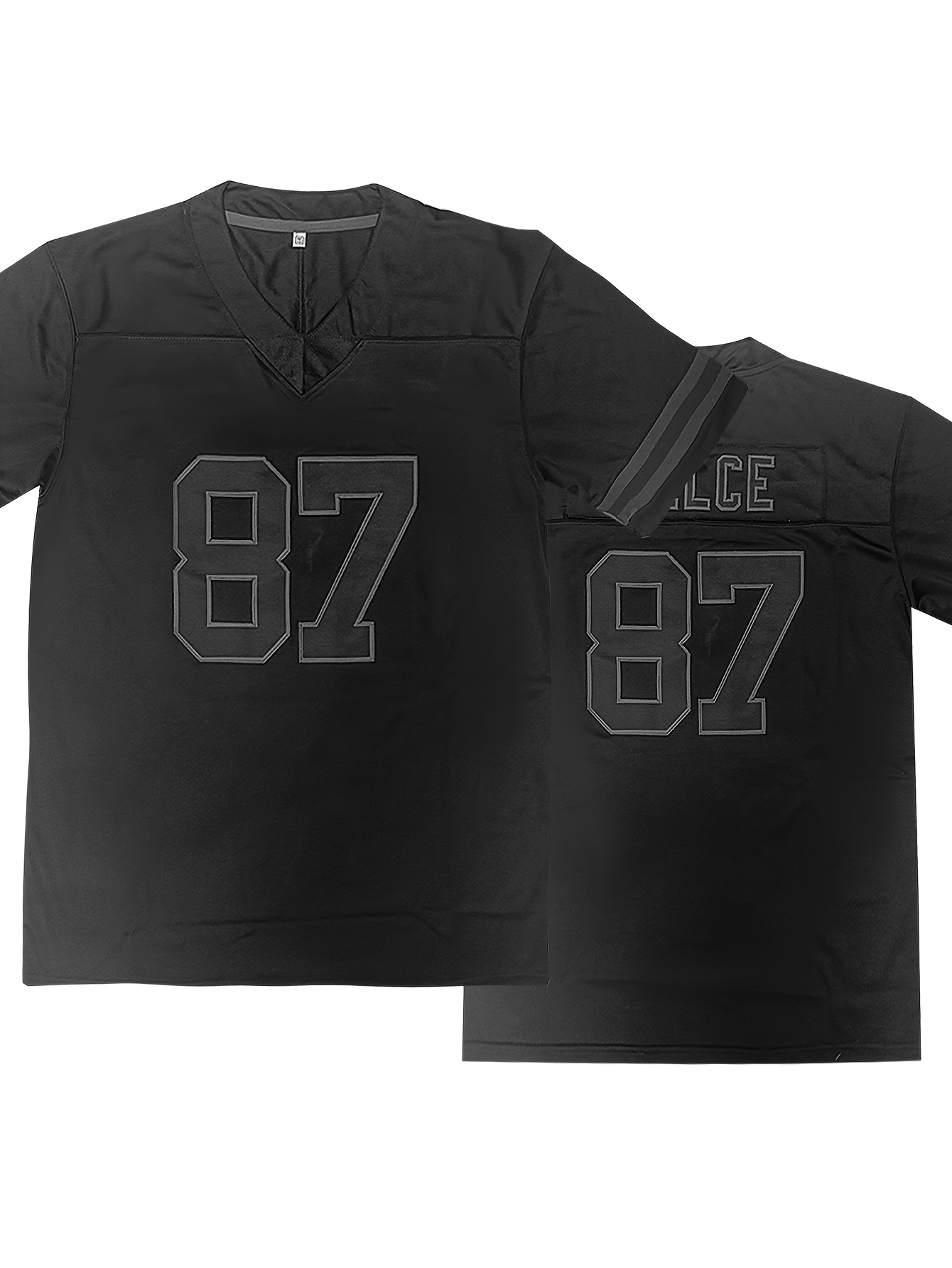 Men's Black #87 Embroidered American Football Jersey - Loose Fit, Breathable Polyester, V-Neck, Casual Street Style Rugby Top for Sports and Casual Attire, Outdoor Activewear|Embroidered Sports Top|Loose Fit Jersey