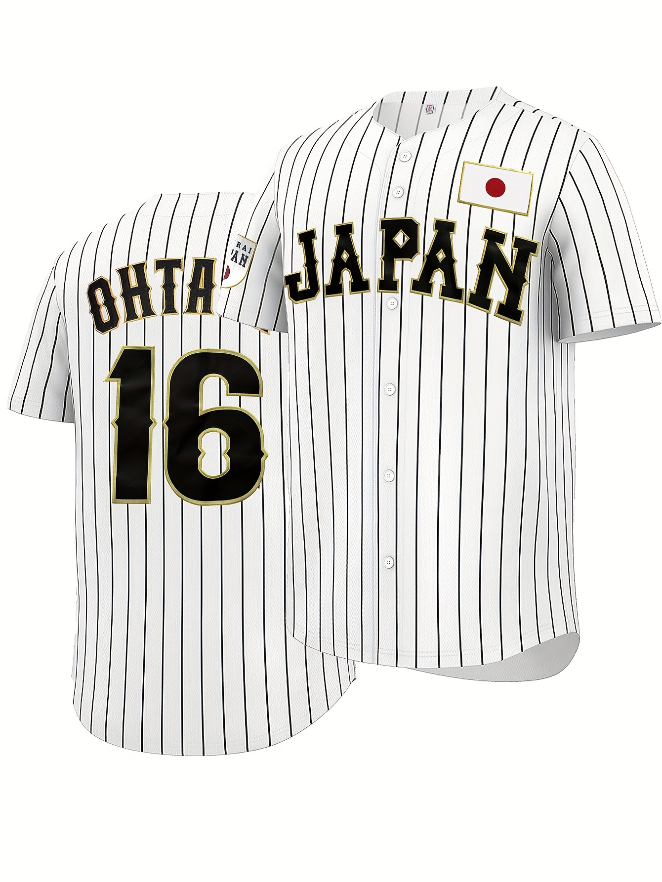 Men's Classic #16 White Striped Baseball Jersey with Embroidered Letters - Breathable, Button-Up Short Sleeve Shirt for Training & Competition