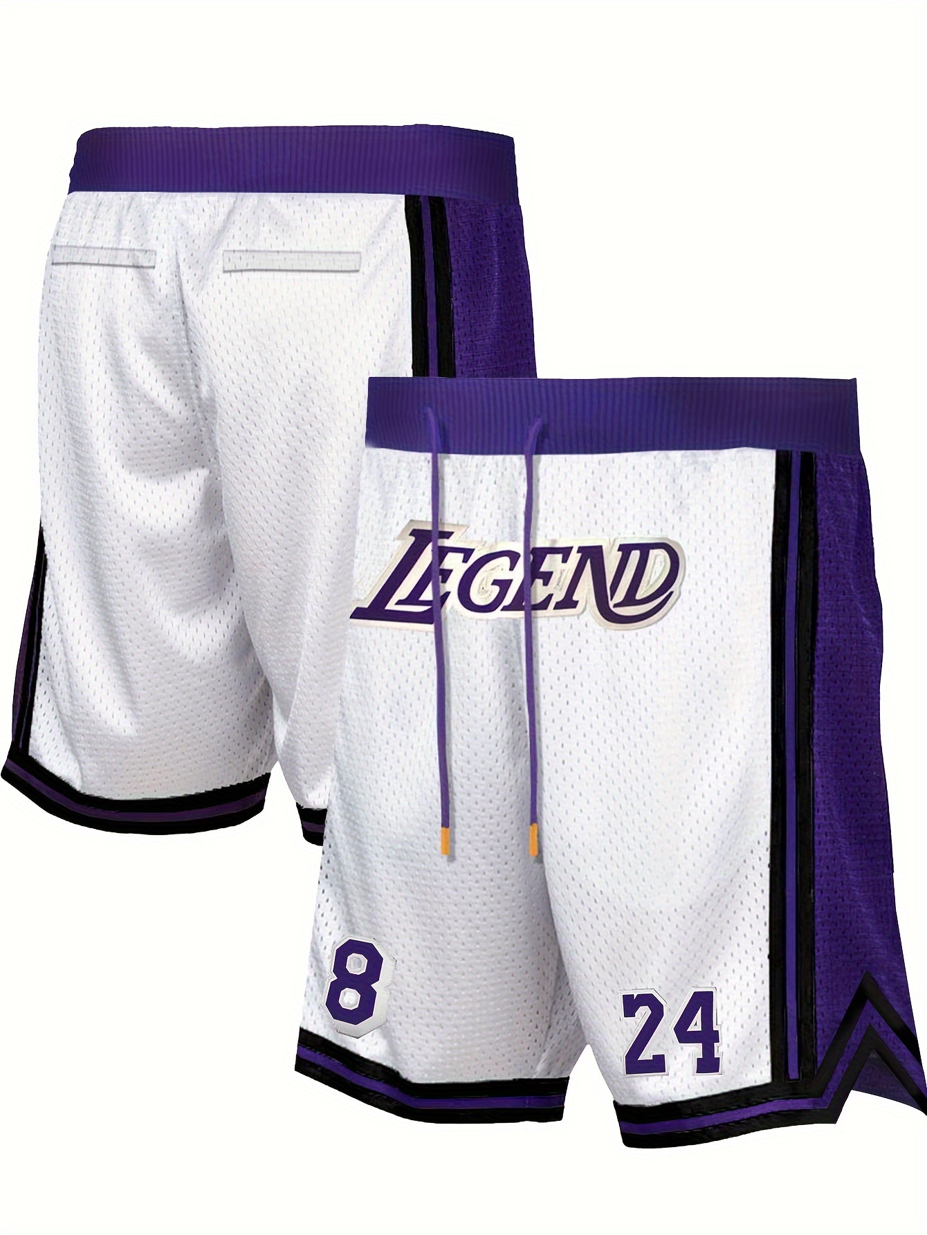 Men's White #8-24 Basketball Shorts with Classic Embroidered Lettering - Breathable Loose-Fit Athletic Shorts for Training, Games & Casual Wear - Machine Washable All-Season Comfort, Basketball Accessories