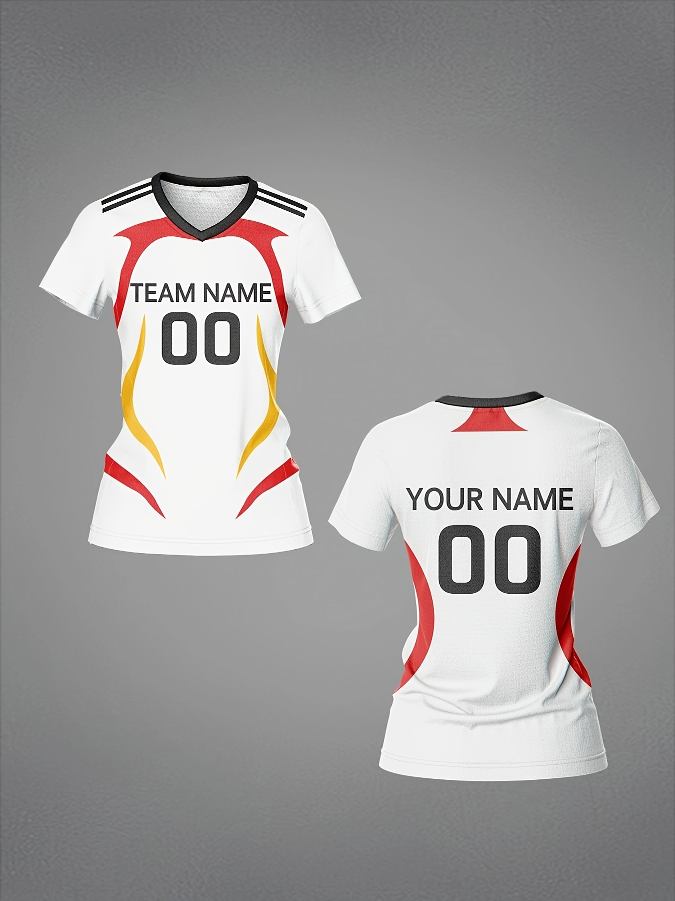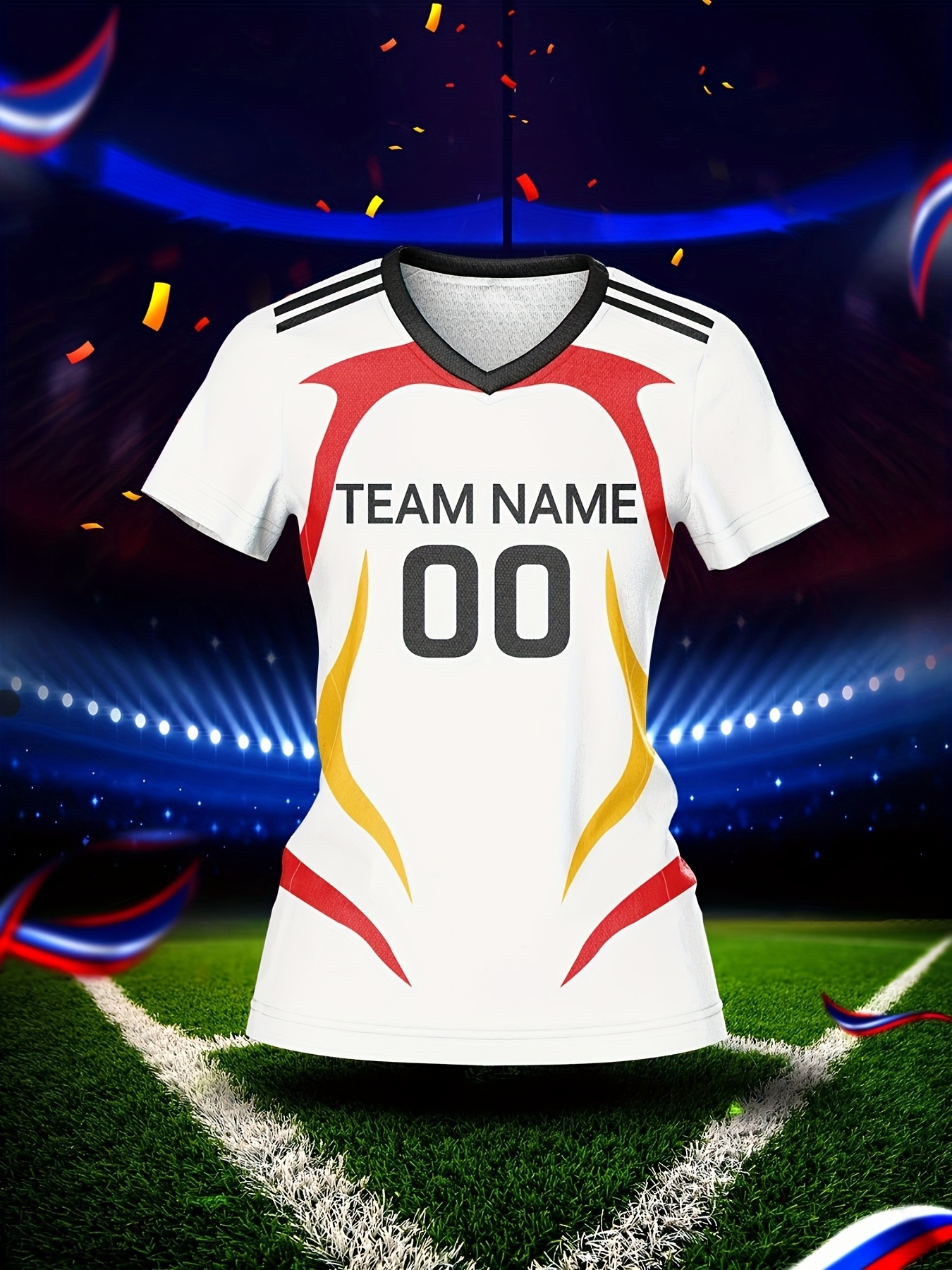 Women's V-Neck Soccer Jersey | Customizable Name & Number | Breathable Polyester | Quick-Dry, Moisture-Wicking | Multi-Color Design for Training and Casual Wear | Spring/Summer/Autumn Sports Apparel
